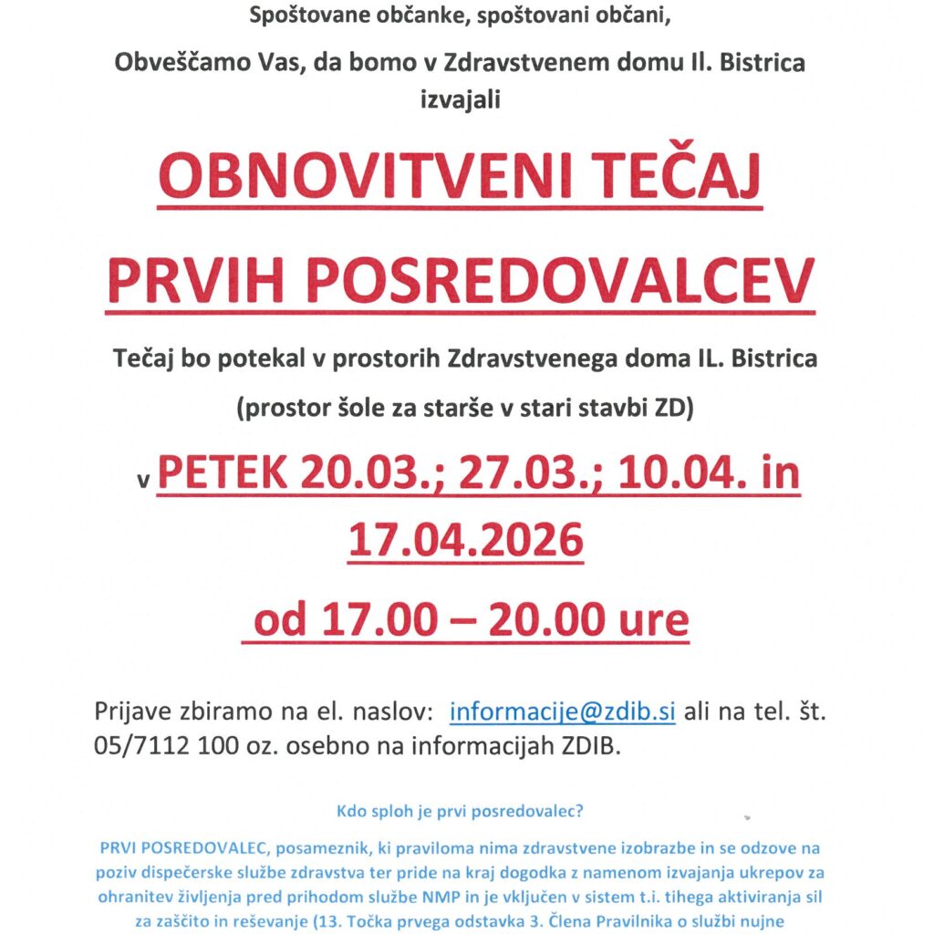 septembru, oktobru in novembru organizirali OBNOVITVENI TEČAJ PRVIH POSREDOVALCEV