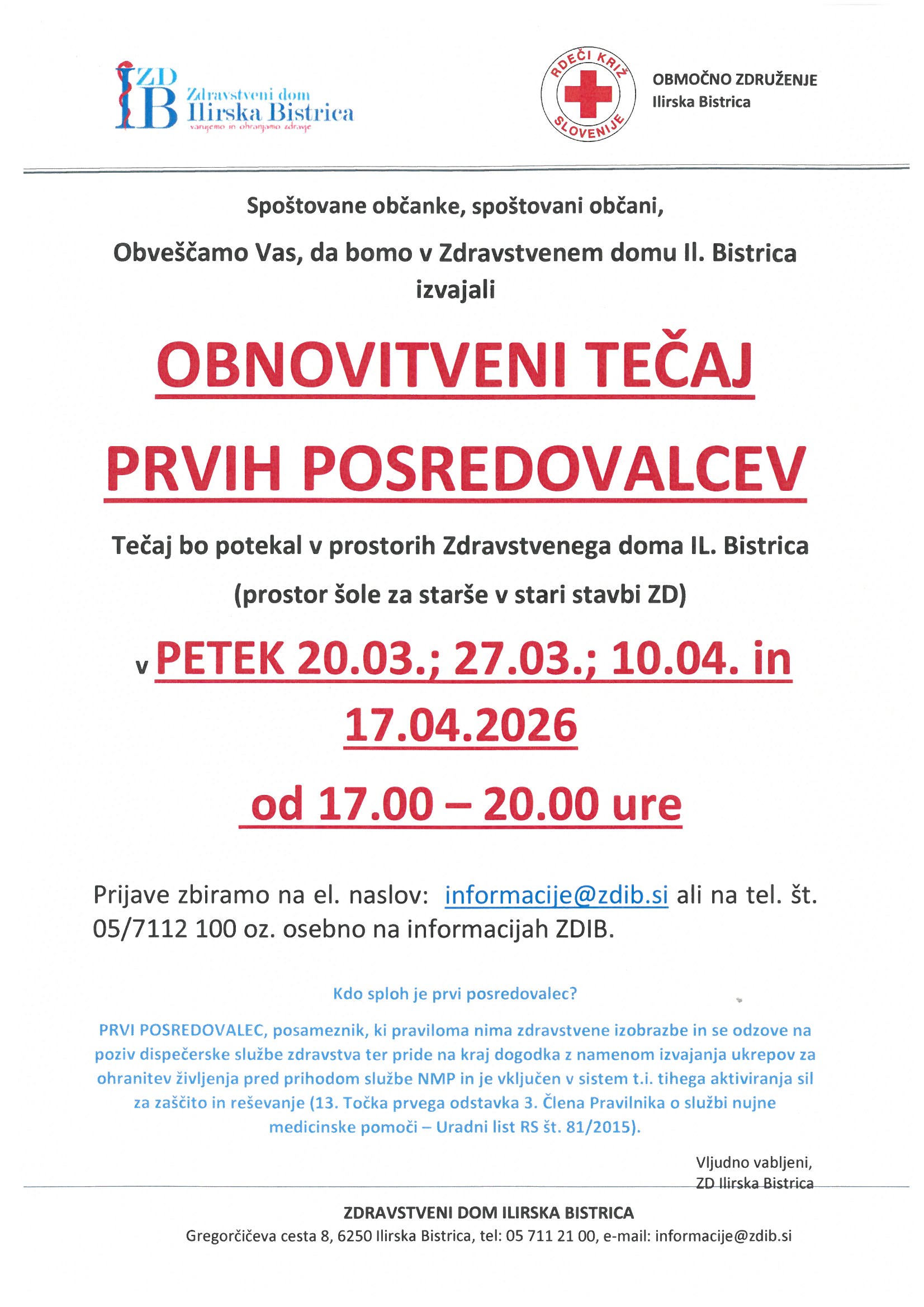 OBNOVITVENI TEČAJ ZA PRVE POSREDOVALCE